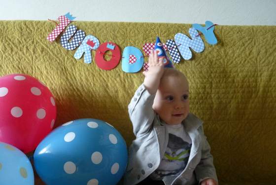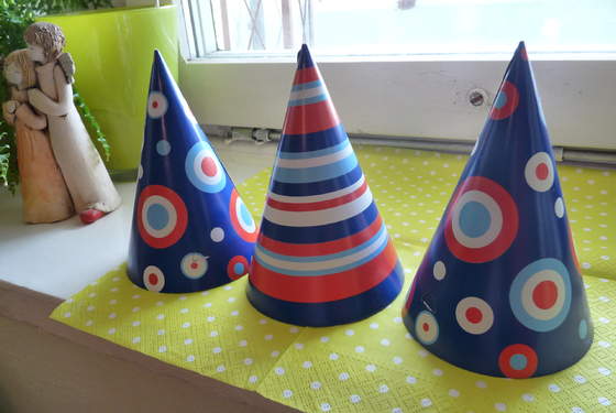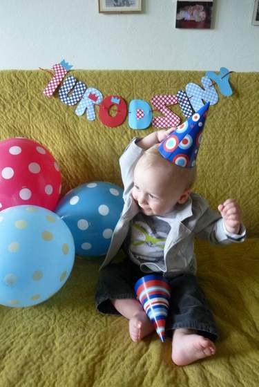 reszta w swoim czasie:) np świeczka w kropeczki:-D w ogóle kropeczkowo się zrobiło, bo dekoracje gromadziłam już od jakiegoś czasu. baner zrobiłam sama i już mam zamówienia na dwa dla koleżanek:-D czapeczki ze smyka ( Czekają na jutrzejszą imprezkę- na Olka i Kalinkę oraz może Julkę), literki m i cyferki 1 też wykleiłam, reszta ozdób kupna, ale jak znajdę chwilę- może jeszcze wieczorkiem coś wyczaruję. a najładniejsze balony- pomarańcz, brąz, zieleń w kropki zostawiam na imprezkę w górkach:-)