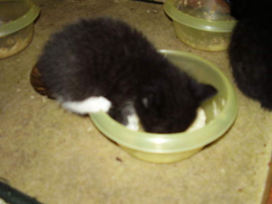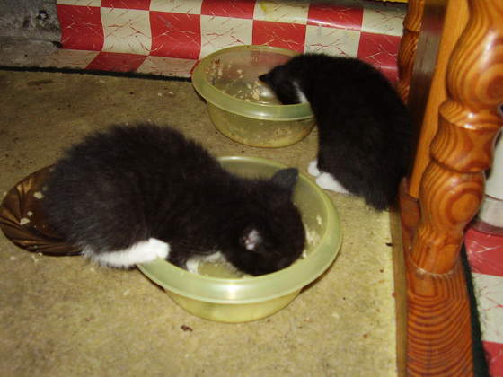 a to są moje niuńcie-maluńcie. pluszaczki moje. już ładnie jedzą kaszkę, są żywe, gonią się i wogóle, no i moim aparatem idzie im zrobić zdjęcia, bo mam stabilizację, a Bambucza nie miała. wczoraj im poklikałam zdjęcia. jeszcze jakieś porobię, a zwłaszcza po tygodniu naszej nieobecności, bo pewnie podrosną jak na drożdżach. łobuziaki kochane. gospodarz nam je będzie karmił- już tak robił. kochany facet. nagotuję im kaszki, co nie będą na samej karmie. Pan Henio ją sobie da do lodówki i też im będzie dawał. bo one lubia kaszkę.