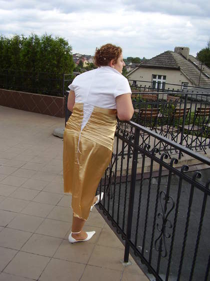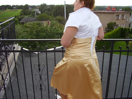 sol co do sukienki na wesele-> uszyj sobie jakąś. ja też szyłam w ubiegłym roku, zaraz ci pokażę fotkę. ja też nie dość, że dużych, to jeszcze nietypowych wymiarów i sukienki na mnie to koszt ok. 200-500zł. a ta sukienka kosztowała mnie-> materiał 30zł+ robocizna i wyszło mi 90zł za sukienkę. sama ją sobie zaprojektowałam, bo sobie umyśliłam, że jakbym wkońcu zaszła, to przyda się ta regulacja na plecach (ewentualnie jakbym schudła). więc sukienka pasi na rozmiarówkę dość szerokiej skali