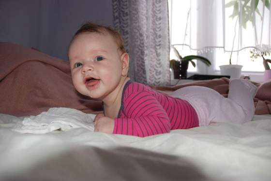 Moja też już zaczęła się przekręcać, na boczki już od jakiegoś czasu się przekręca a z brzuszka na plecy pierwszy raz udało Jej się chyba w sobotę - prawą rączkę odrywa od podłoża prawą nóżkę zakłada na lewą i zaczyna się bujać na brzuchu, buja się tak długo i tak mocno aż się przekręci na plecy, komicznie to wygląda