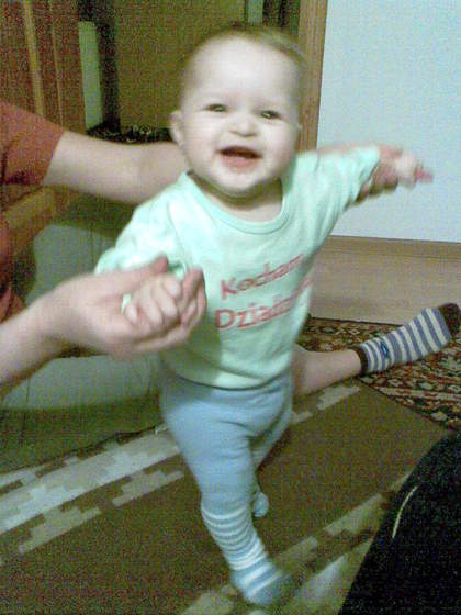 w nocy budzi mnie jakies darcie, otwieram oczy a on zadowolony piszczy i sprezynuje, i mam przesrane bo musze go pilnowac non stop