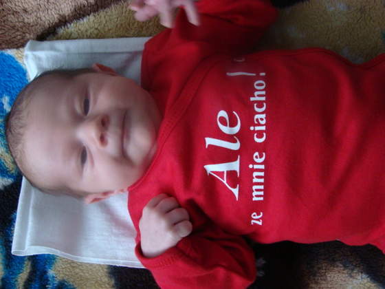 a kuba dzisiaj wstal na chwile ale przeszedl kawalek i usiadl ,biedulek ,ale dzis juz chcial piers i dalam mu pare razy troche popic i dalam troche marchewki ugotowanej z ziemniaczkiem bo jak patrze na niego to nie moga uwierzyc,dziecko ktore biega za dwoch tetni zyciem teraz lezy i sie nie rusza ,popil tez dzisiaj tego plynu i daklam mu lacidofil z woda'