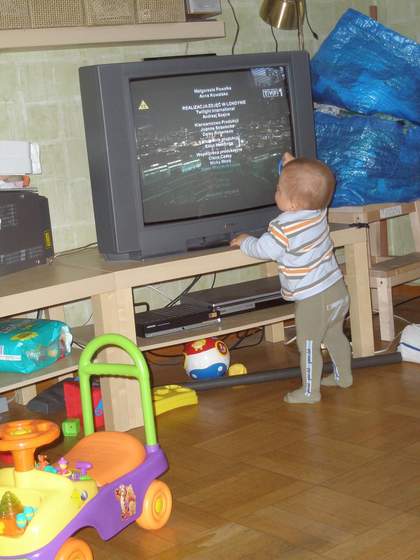 no i Fifka jako malego telewidza z glowa w ekranie. i tak. to, co widac z boku zdjecia to byly czekajace na mnie torby z praniem do uprasowania :tak:(juz sie uporalam :-))