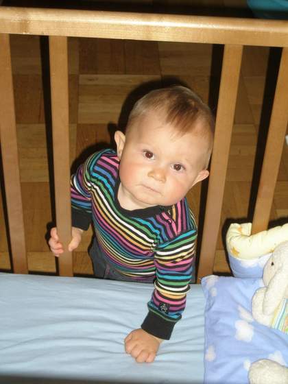 poza tym wklejam zdjecie mojego synusia, ktory uczyl sie dzis wylazenia przez szczeline w lozeczku