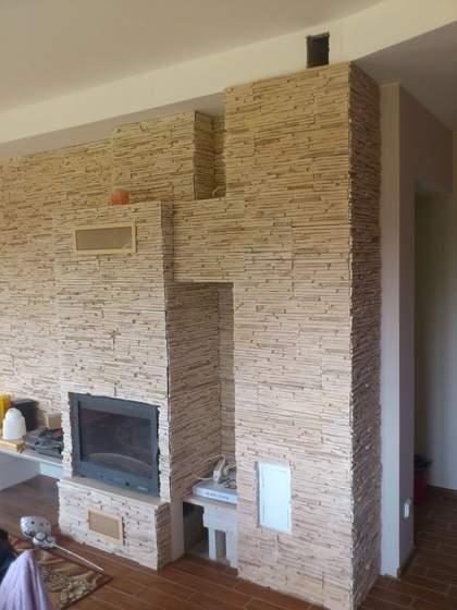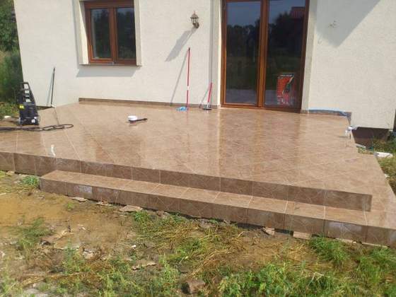 Irisson, to wstępne zdjęcie tarasu - jeszcze do kilkukrotnego przemycia, bo po fugach zostają ślady. Ale już spokojnie można sobie chodzić po kaflach. Bardzo fajne uczucie. No i załączam zdjęcia kominka, który M wykładał takimi właśnie płytkami