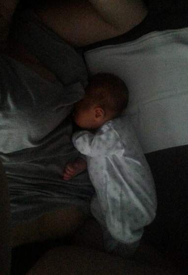 Oluś grzeczny. Spi, cycka, i robi kupe. W przeciągu 24h już 7 pieluch okupkanych.