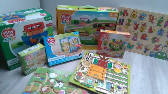 Są zabawki już od 1 roku zycia, ale wiem ze niektóre dzieciaki bawią się nimi szybciej. Ja kupiłam tą Arkę, że zwierzętami o której wspomniała Bunia, kolejkę, układanki, literki i puzzle 3d ze zwierzętami.U nas tam było tyle ludzi, że szał.