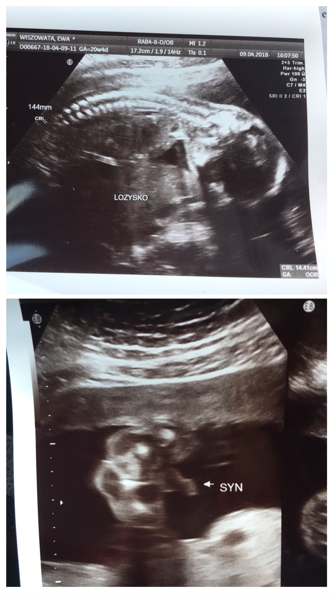 No to genialnie[emoji16] chłopak potwierdzony[emoji16]Oto nasz Kawaler [emoji64] 144mm, 334g i rozwój cały prawidłowyMały leży na brzuszku i trzyma gardę, wiec nie wiemy do kogo jest podobny [emoji12] najważniejsze w każdym razie, ze jest zdrowy [emoji5] Co do płci to pan doktor powiedział, że widzi jajeczka i siureczek i na 100% będzie chłopak!