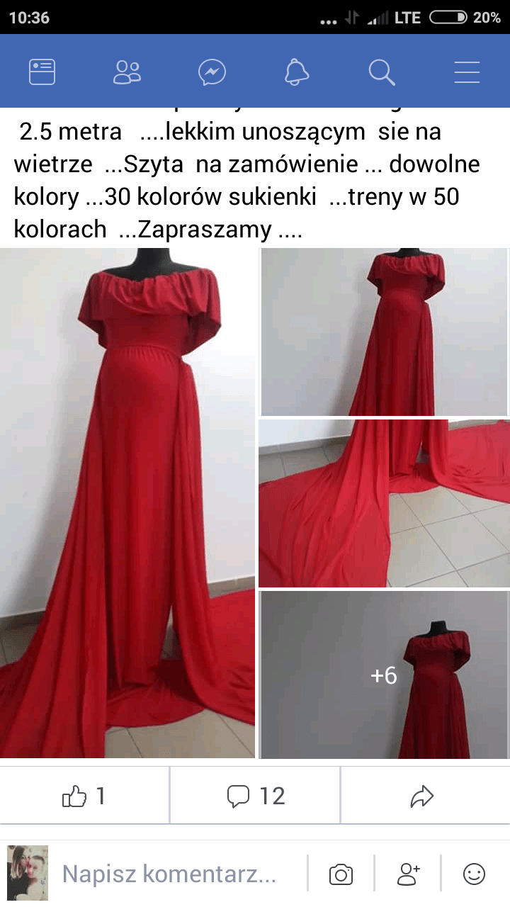 Jeszcze się zastanowię ale raczej zamówię50kolorow do wyboru. Odpinany tren , może być w innym kolorze. Sukienka 100, tren 60. Pisze gdyby któraś potrzebowała na sesję brzuszkowa