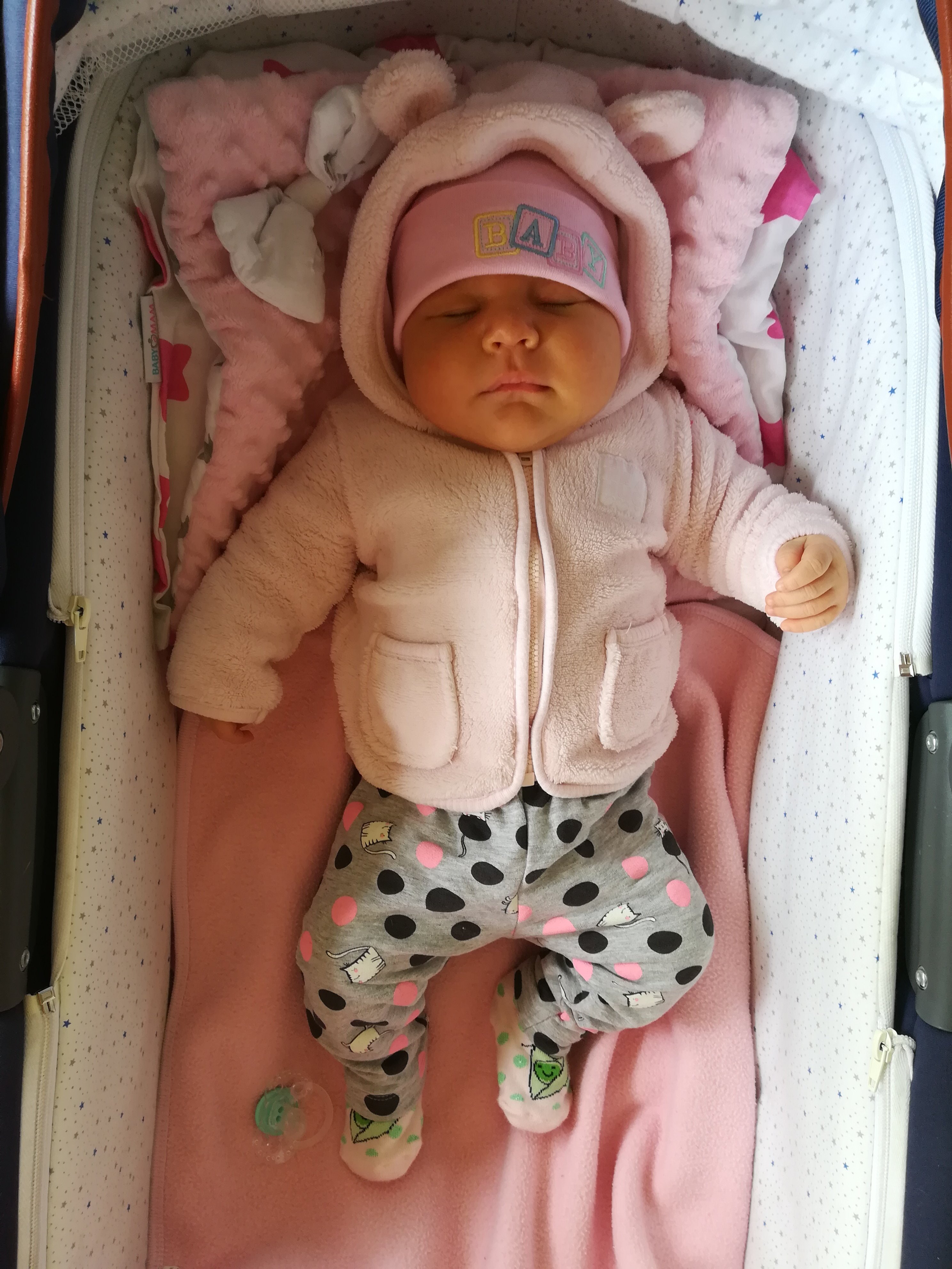 Jaka pucia słodka ☺Malwinka na spacerkujeszcze nie zdazylam wyjść z domu a ona już usnęła tylko czapkę jej założyłam .