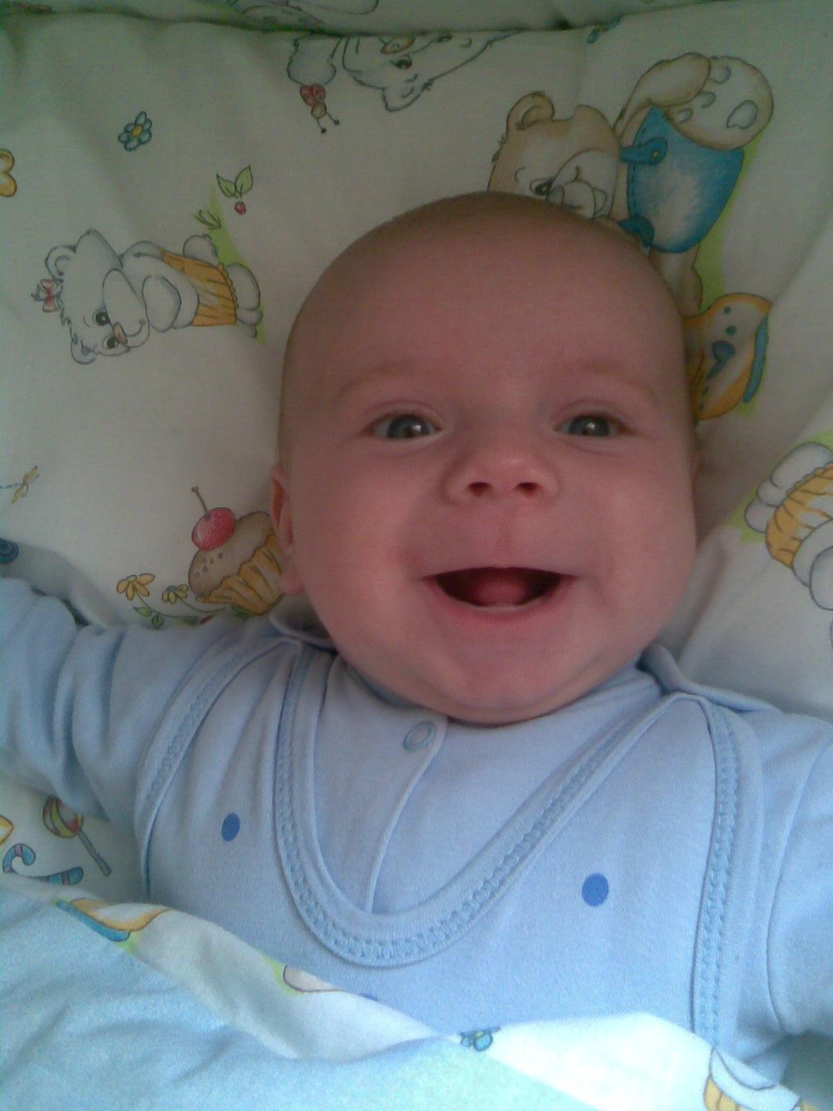 A panienki faktycznie, pięknie rosną. Pochwalę się Wam uśmiechami Martusi, Emilka jeszcze nieśmiało i bardzo rzadko, Martę to bardzo łatwo rozbawić. Mam za to minę Emilki (pt. "Mamo! daj mi to mleko w końcu, bo się obrażę"), która rozwala mi konstrukcję :p Jak ja kocham te moje wszystkie dzieci...