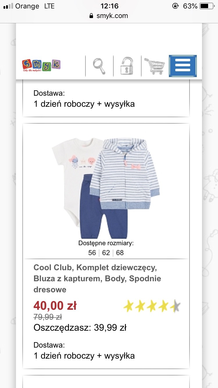 Przez moje posty zbankrutujecie hah ale proszę, jeśli któraś z Was już będzie uzupełniała garderobę dla maluszków na rozmiar 68 cm to na smyku fajne ciuszki i mega cenyja mam jeszcze taki bon zniżkowy -20% na ciuchy to chyba po wypłacie Bartka za tydzień przejedziemy się do smyka popatrzeć jakieś jesienne spodenki bluzy dla małej [emoji16]