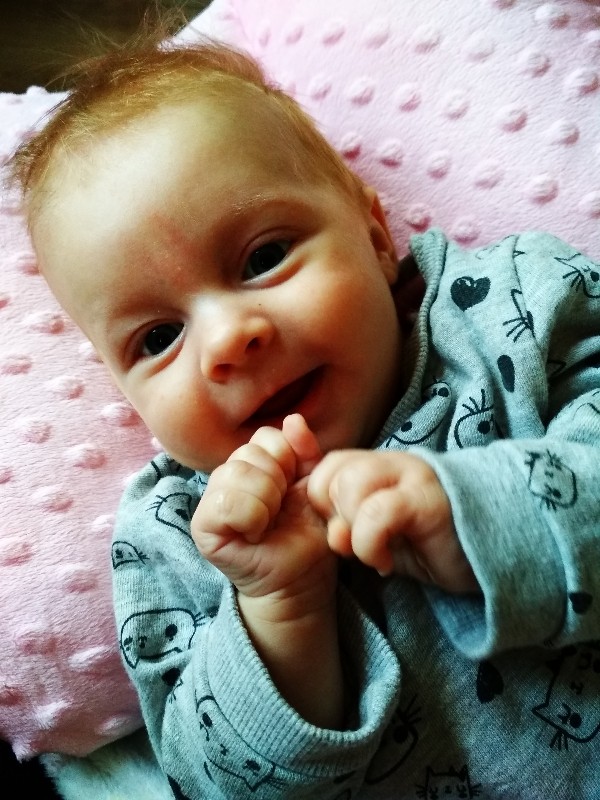 Bo z końcu widzi nową gębę a nie tylko mama i mama ☺A to nasza już dawno się uśmiecha świadomie ale od dwóch tygodni to są takie śmiechy , gadanie na całego że masakra. Zaczepia , piszczy sobie a w mojego K jest tak zapatrzona , że ja ją usyoiam , Kamil podejdzie a ona wypluwa smoczek , oczy wielkie, uśmiech od ucha do uchaZobacz załącznik 903199