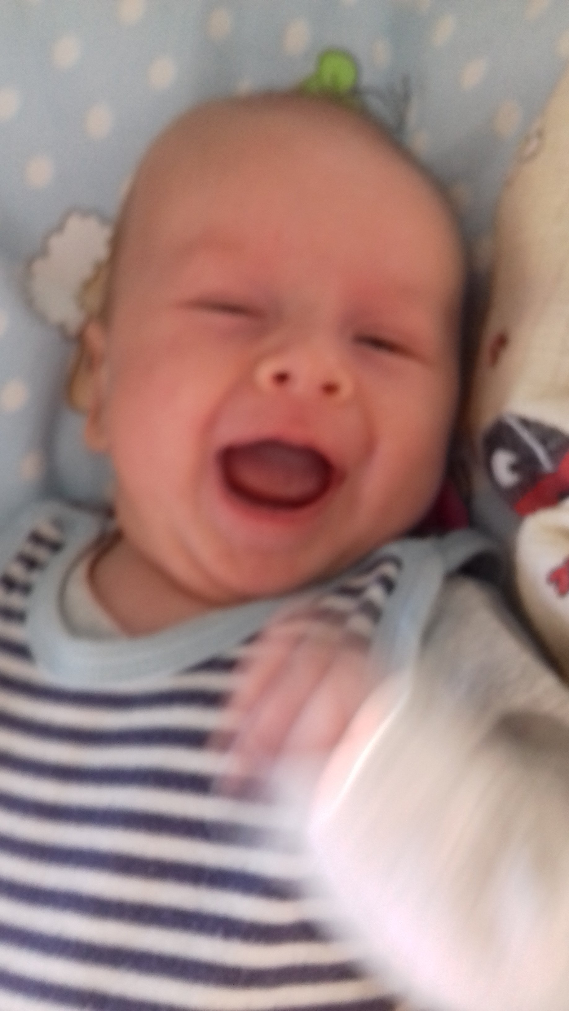 Udało mi się w końcu zrobić małemu zdjęcie jak się śmieje. Jest niewyraźne bo zrobione szybko bo mały zawsze jak zobaczy telefon to poważnieje i się przygląda i koniec z uśmiechami [emoji5]