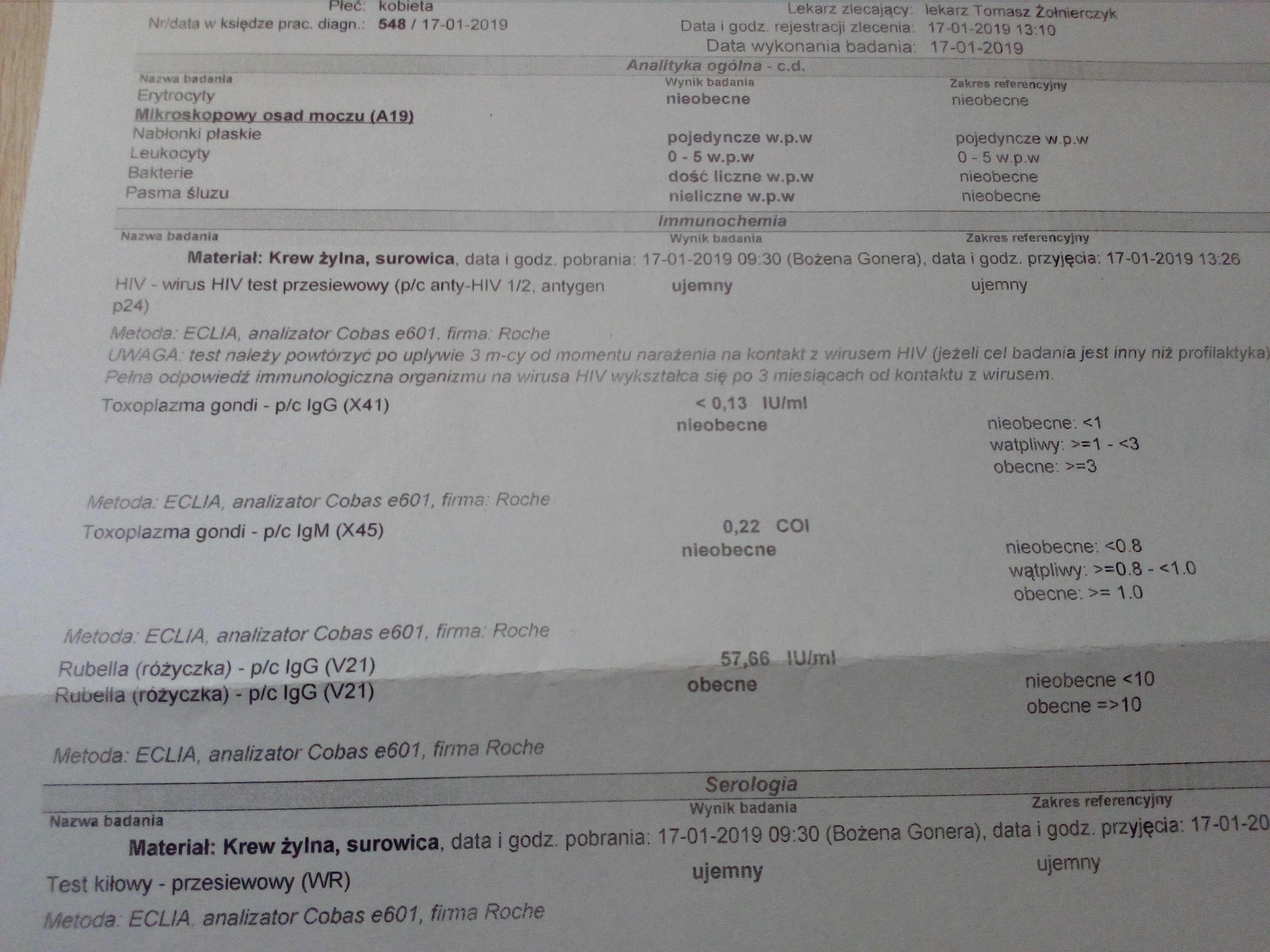 Tak wyglądają moje badania. Wszystko mam ok jedynie barwe moczu mam na barsztynowy i dość liczne bakterie w moczu. Wizyte mam w poniedziałek ciekawi mnie ta rózyczka;/ Miała któraś z was tez taki wynik z tej różyczki?
