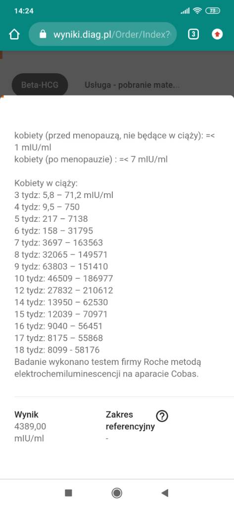 Ja gdzieś czytałam że beta w pierwszych tygodniach szybciej wzrasta a potem trochę hamuje, więc wydaje mi się że jest szystko będzie ok ! Jak na razie wszystko mieści się w normie - trzymam kciukiTo znowu jaz racji tego, że ze mnie panikara (mniej bolą mnie piersi) zrobilam bete jeszcze raz choć w odstępie 5 dni. Aktualnie 5+2 albo 5+1.