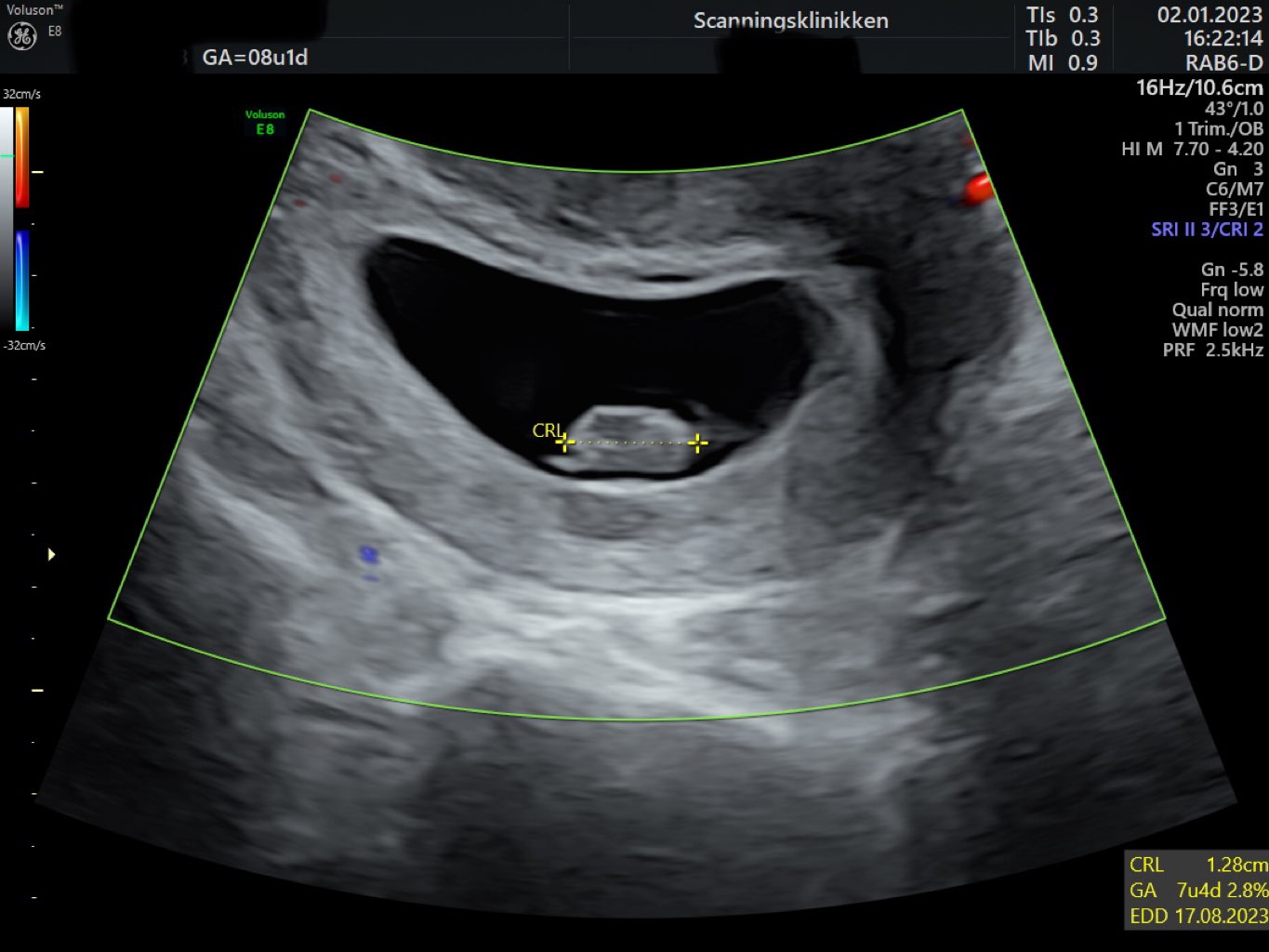 U nas 1.08 cm człowieczka, serduszko 128 ud/min - wg pani doktor na wiek ciąży jest ok. Wg OM jestem 7+2 i lekarka potwierdziła, że wg USG również także maluch rośnie w dobrym tempie