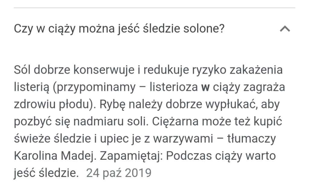 wiem, ze nie działa to tak, ze raz zjem i umrę, bo w dwóch ciążach (i w tej do wigilii, później już nie) śledzi sobie nie odmawiałam a żyję ja i moje dzieciGeneralnie surowa ryba jest zagrożeniem w ciąży. KAŻDA.