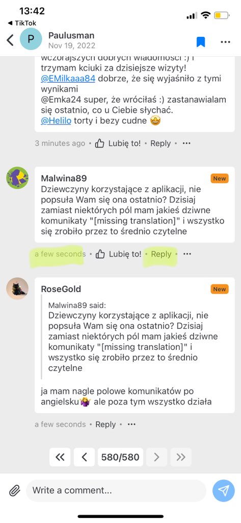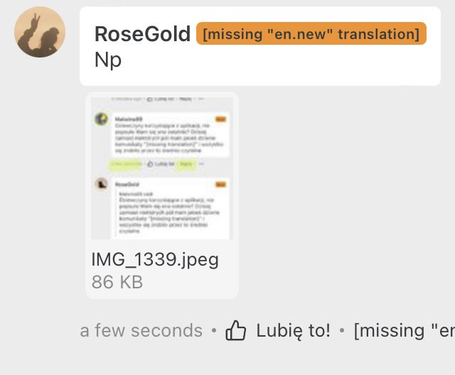 ja mam nagle polowe komunikatów po angielskuDziewczyny korzystające z aplikacji, nie popsuła Wam się ona ostatnio? Dzisiaj zamiast niektórych pól mam jakieś dziwne komunikaty "[missing translation]" i wszystko się zrobiło przez to średnio czytelne