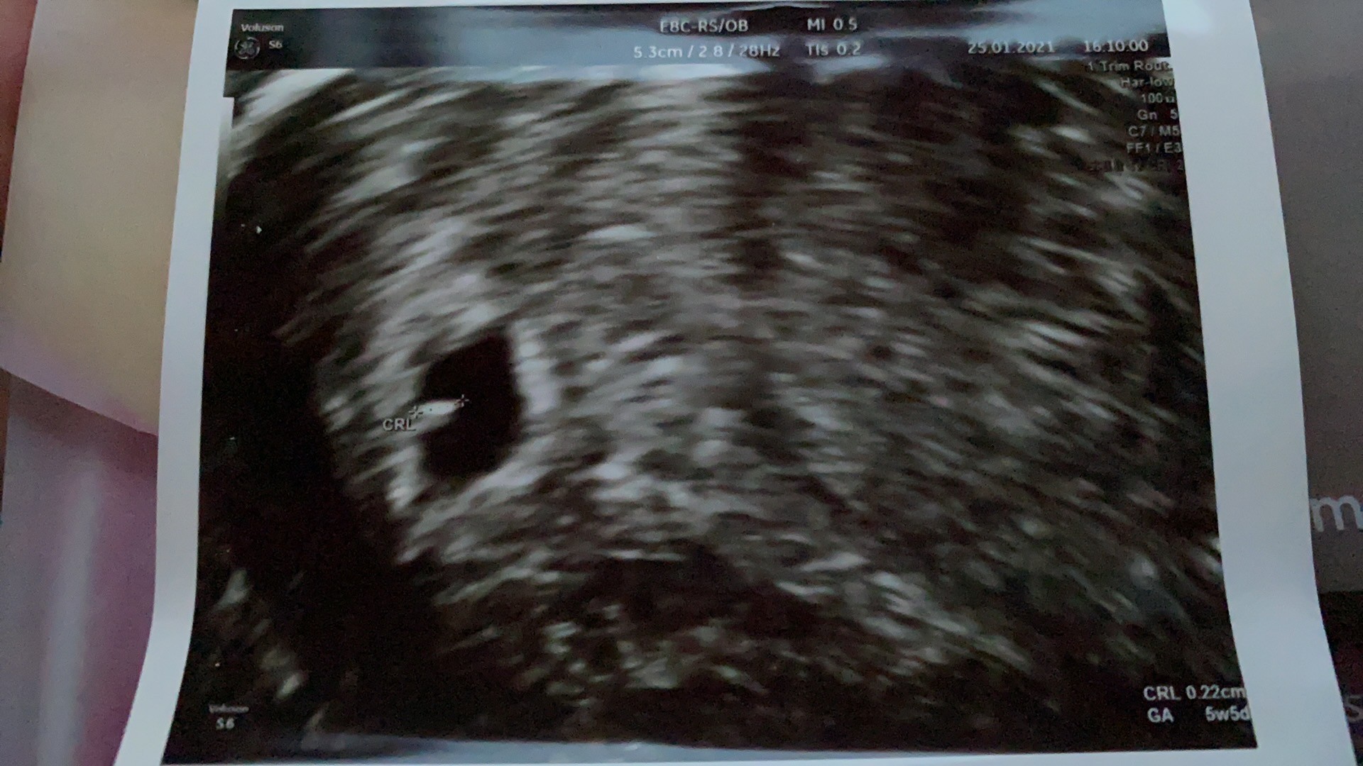 No zdjęcia mega kiepskiej jakości, nie mierzył lekarz pęcherzyka? Moze wydrukował inne zdjęcia. Badałaś może poziom bety? Czytałam że zarodek przy becie powyżej 6tys, serduszko 10tys, ale tez nie zawsze.w ogóle dla mnie to zdjęcie jest jak z kalkulatora... w poprzedniej ciąży mialam nawet tak wczesne usg, ale na super sprzęcie i były kompletnie innej jakości...