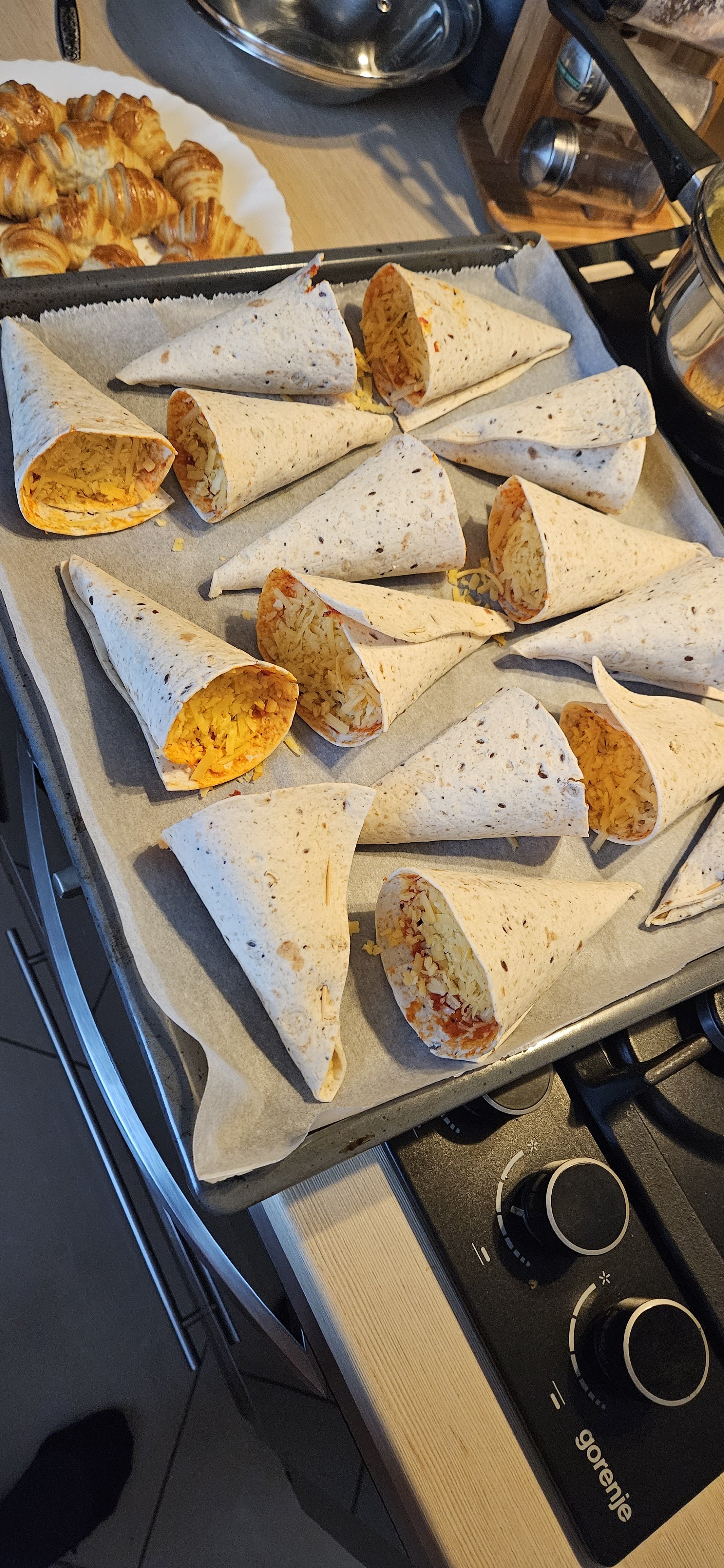 A do tego rożki nadziewane kurczakiem i serem.