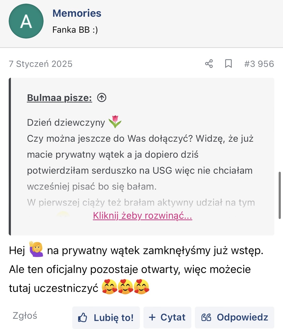 W pierwszej ciąży też późno chciałam dołączyć do grupy mam i zostałam odrzucona, jakoś dramy z tego powodu nie robiłam