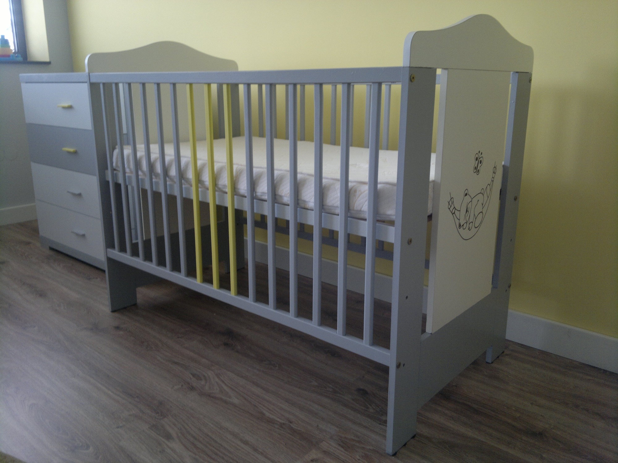 Łóżeczko wyszlo piękne! Podoba mi sie połączenie szarego z pozatym, sama myśle o czymś takim;-)Hej Dziewczyny, Witam nowe koleżanki