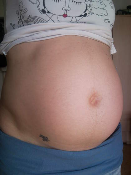 jaki tam wielki...idealny śliczny:-):-) pępus prawie wylazł i krecha po mału się robitadaaaam!