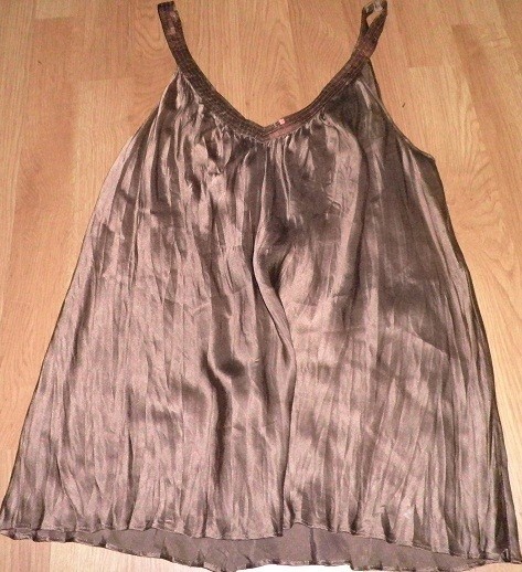 Elegancka bluzka, jestem na nią za wysoka, trzeba mieć poniżej 170 tak mi się zdaje ;)taki gnieciony materiał. Z ramiączkami długość całkowita -61cm