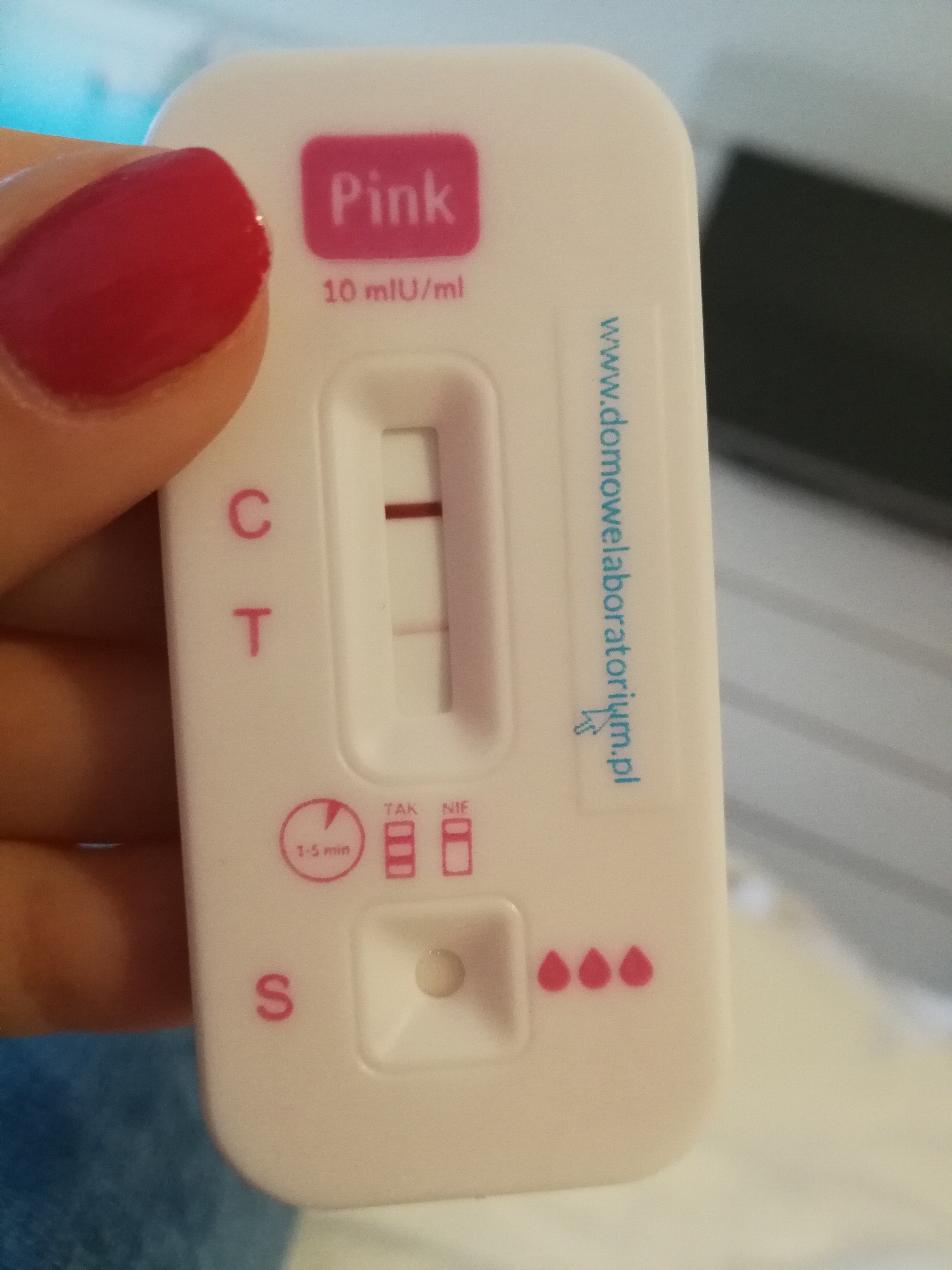 Wyślę wam zdjęcie, jak wygląda test zrobiony w tyg c. 5+0. (6 dni po terminie@)