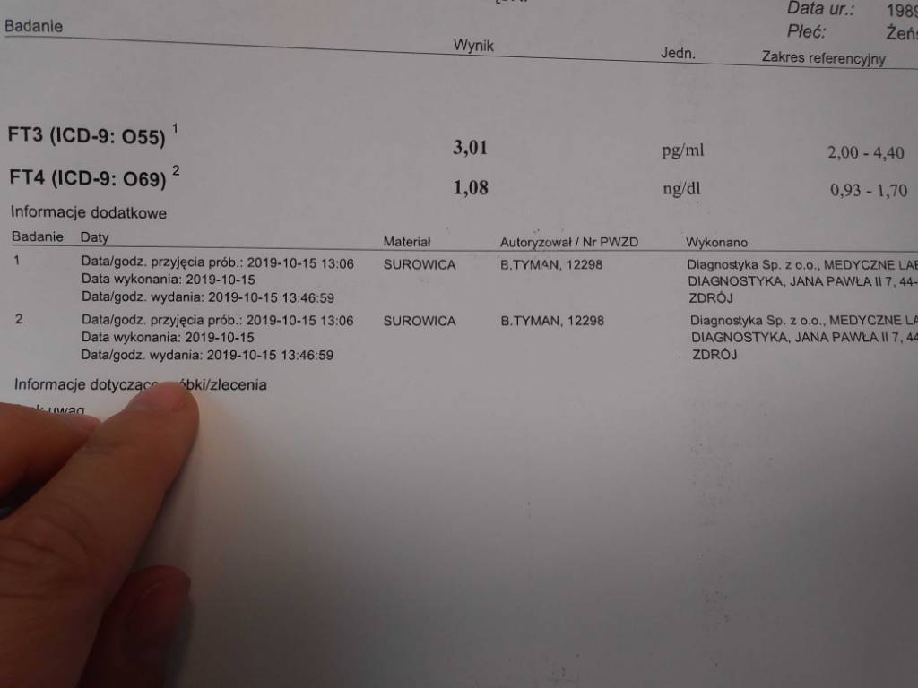 Dzięki wielkieWyniki faktycznie super. Czyli nie ma hashimoto i nie ma potrzeby robić anty tpo i anty tg bynajmniej moim zdaniem. Ja mam ft4 w górnej granicy normy a anty tpo i anty tg robiłam tylko po to by powtowrdzic czy to faktycznie jest hashimoto. W takim razie wystarczy podejść do endo pokazać te wyniki i da leki na obniżenie tsh.