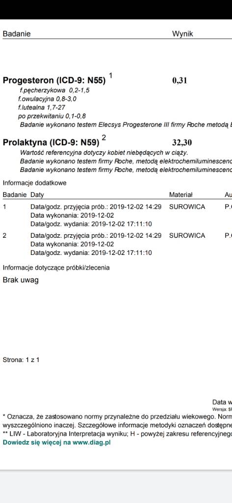 W środę mam lekarza. Nic nie biorę w październiku miałam 18.20Prolaktyna za duża... bierzesz coś?