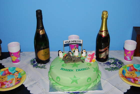 a i załączam zdjęcie tortu i dziecięcego akcentu tzn. kubków i talerzyków.