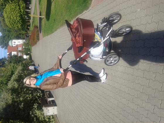 Mamy tydzień od porodu kubusiek ma już wagę u rodzeniowa 3420kg a najniższą była 3020kg i dziś zaliczyliśmy pierwszy spacerek