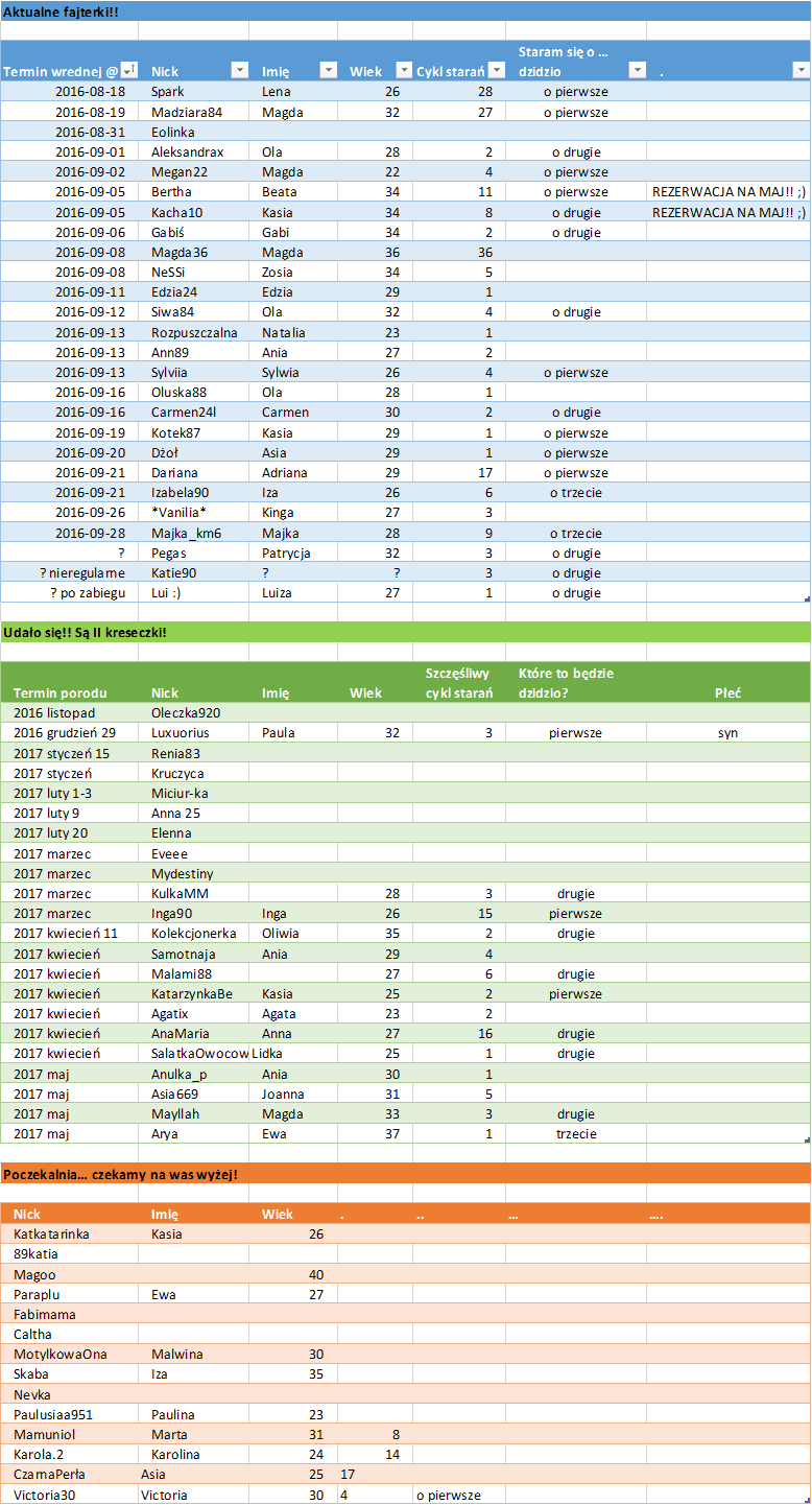 Dziękuję za zieloną tabelkę i czekamy na majóweczkach