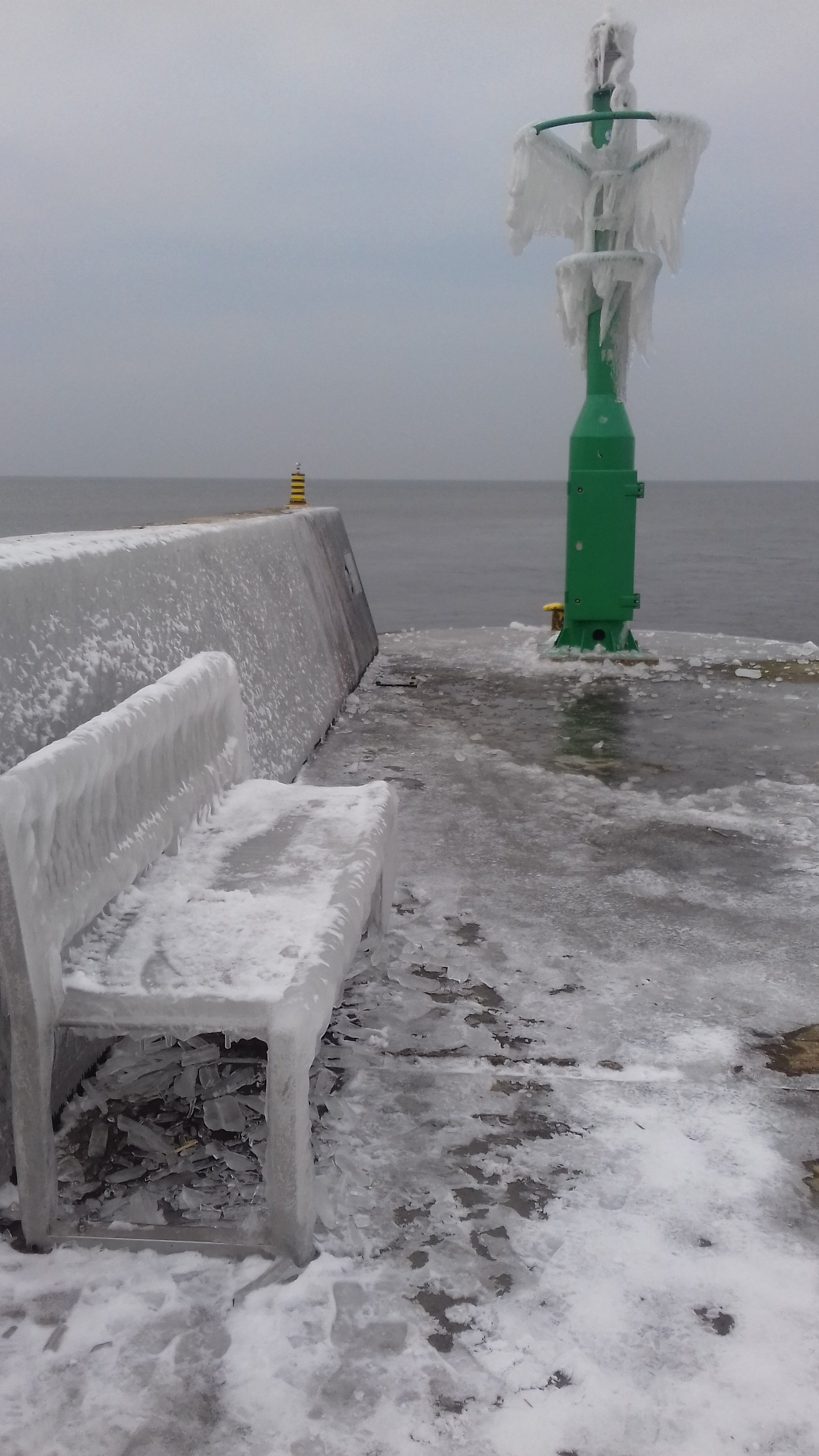 My się dziś nad morze wybraliśmy połazić po ośnieżonej plaży. A tak wyglądał falochron cały w lodzie: