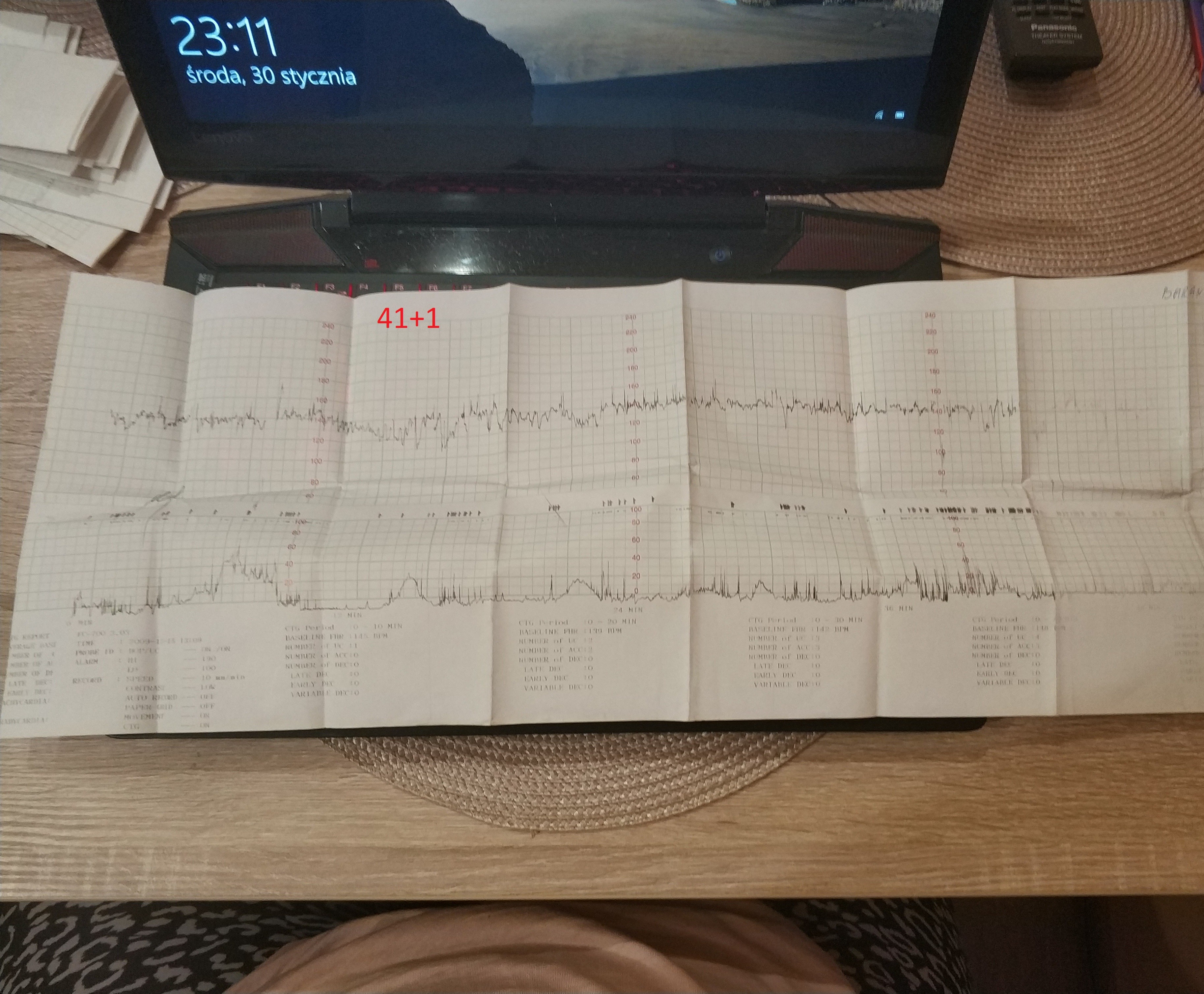 o 12 jade na wizyte.Maliina te zaniku jak maluch ucieka to normalne, u mnie też tak jest na ktg. Ale te twoje ręce to na pewno nic fajnego. Masz teraz wizytę czy innego dnia?