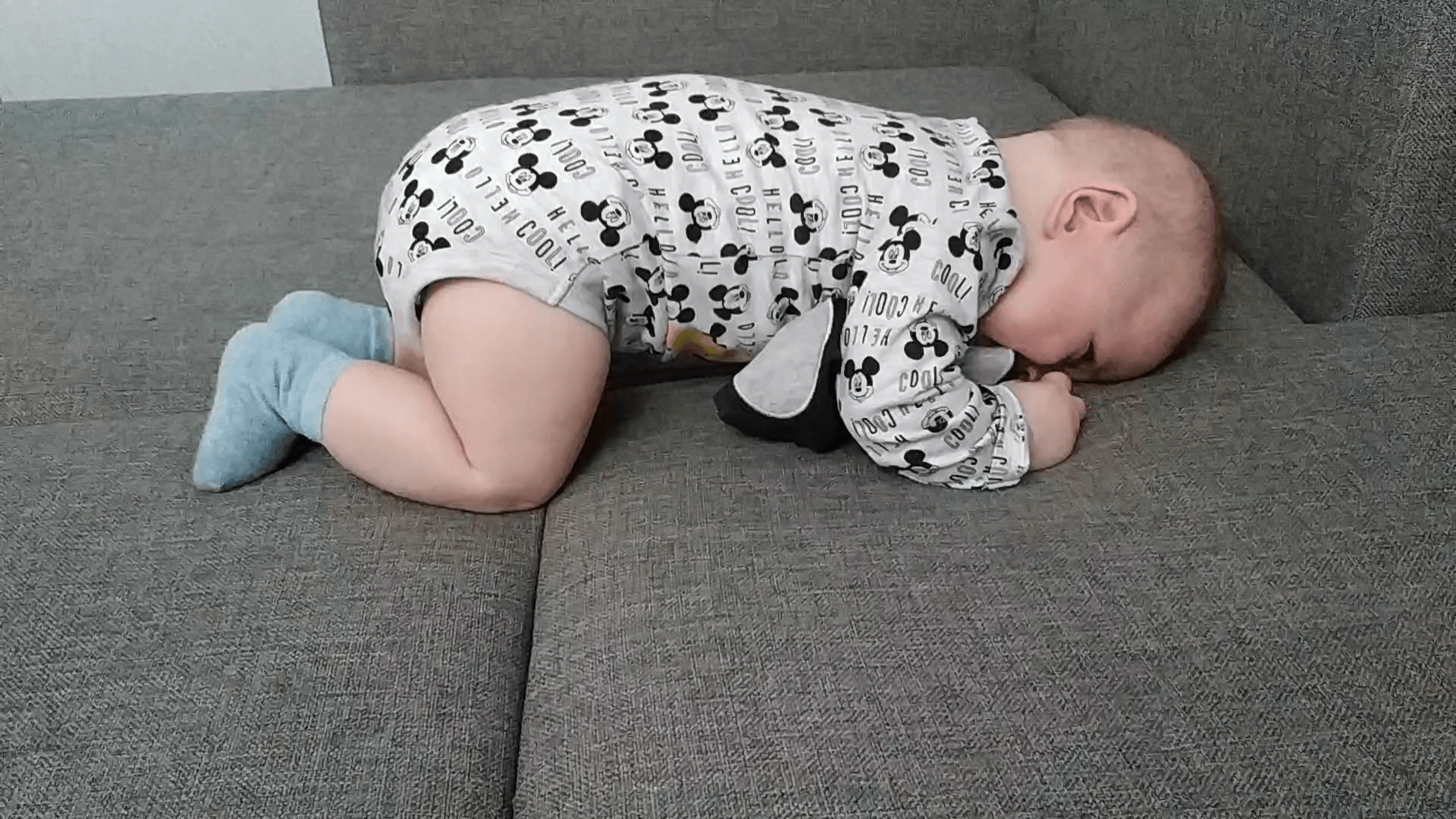 Czyli pozycja jak u nas. Zaraz bedzie raczkowanieFilip nam dzis pokazal jak spadl z lozka. Zbiera sie na czworaka i przewraca na plecy i wtedy znow na brzuch az mu lozka brakuje. Dzis go wyhaczylam jak to robil.