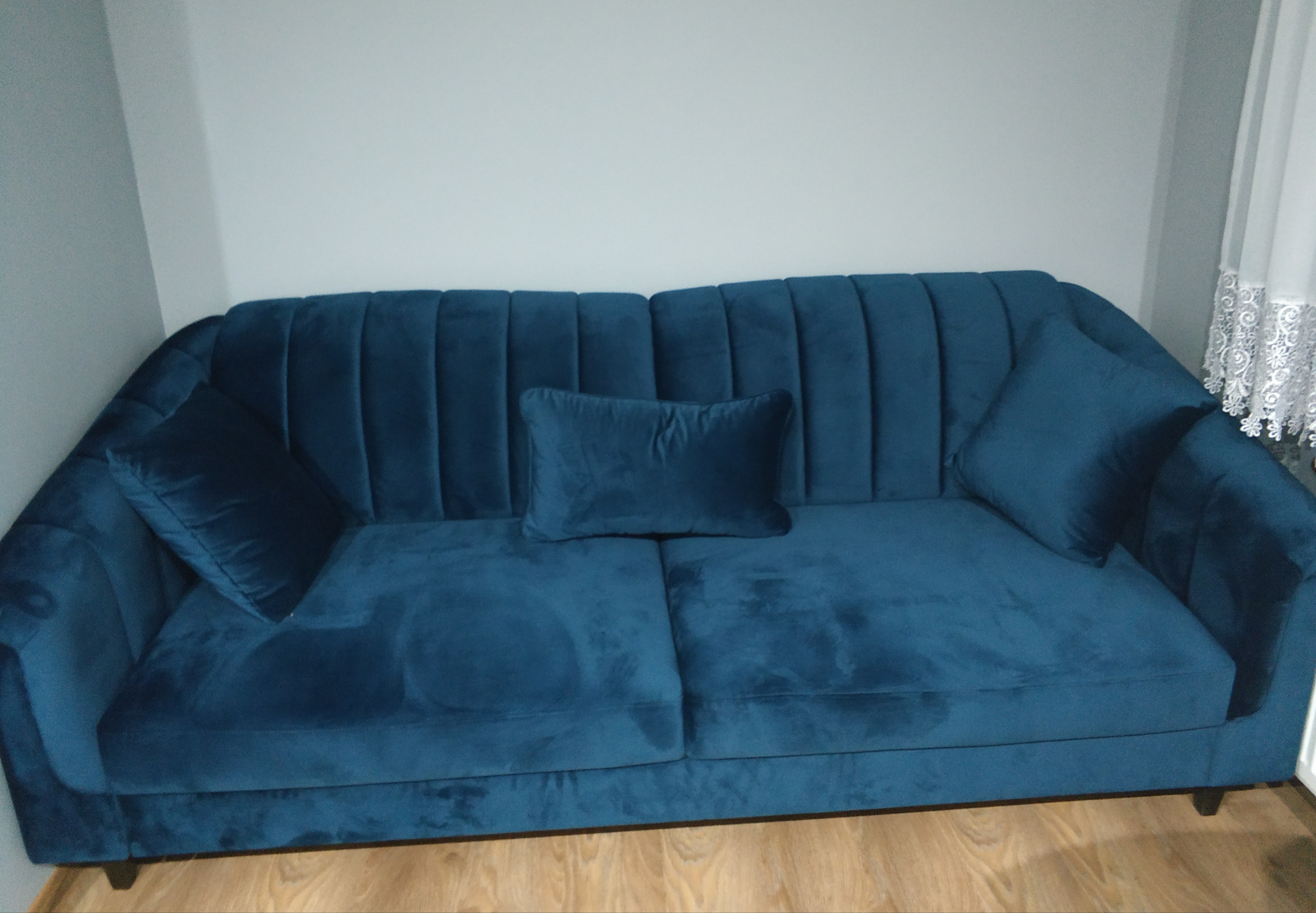 Wiecie co.. Wczoraj zauwazylismy ze zlamala sie deska w naszym narozniku i dobrze ze M zobaczyl bo czasem którejś pięknej nocy wpadlby do pojemnika na posciel. I tym sposobem musielismy kupic nowe lozko ale wzielismy tym razem sofe ma wieksza powierzchnię spania jak nasz naroznik i zajmuje mniej miejsca.
