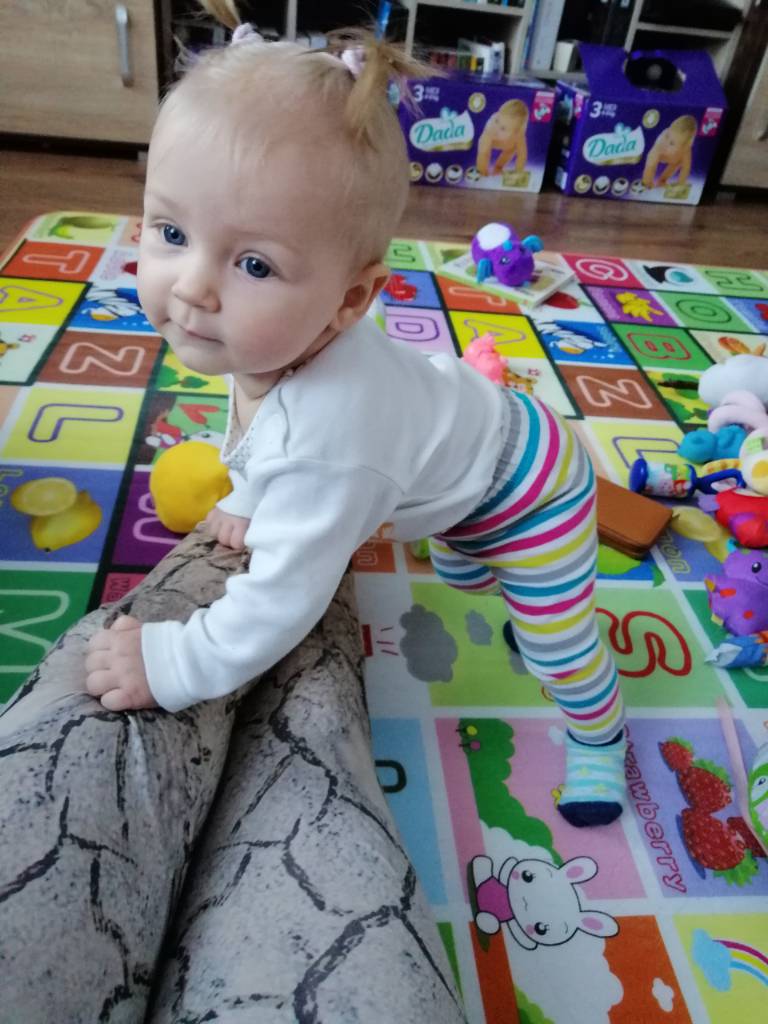 Super, że młoda taka spryciula i strasznie fajnau nas postępów brak, obracamy się tylko na jeden bok i to jak bardzo czegoś chcemy. Zaczełyśmy chodzić do żłobka bo mama wróciła do pracy na pół etatu, dzięki temu neurologopeda stwierdziła, że mała potrzebuje rehabilitacjji.. I że przy kontroli mam naciskać na to bo ma lewą stronę na piętą (trzem lekarzom o tym mówiłam, a nikt nie widział problemu..) przy ostatniej kontroli, lekarka powiedziała " jak Boga kocham ją tu nic nie widzę", ale naciskałam, żeby nas rehabilitant zobaczył, więc dla świętego spokoju nas wysłała, i co na rehabilitant? No faktycznie macie napięta lewą stronę.. Szlag mnie jasny trafił bo dziecko od urodzenia tak ma i pół roku o tym mówiłam, a wszyscy, że ok, że ma czas.. I głupia wieżyłam, wkoncu lekarzem nie jestem.. I gdyby nie żłobek, dalej by mi wciskali, że jest ok, że to "nie uszkodzone, tylko leniwe dziecko" ahh mam nerwy.. To się rozpisałam [emoji16] ale ogólnie jest fajna, uśmiechnięta i nawet ładnie je