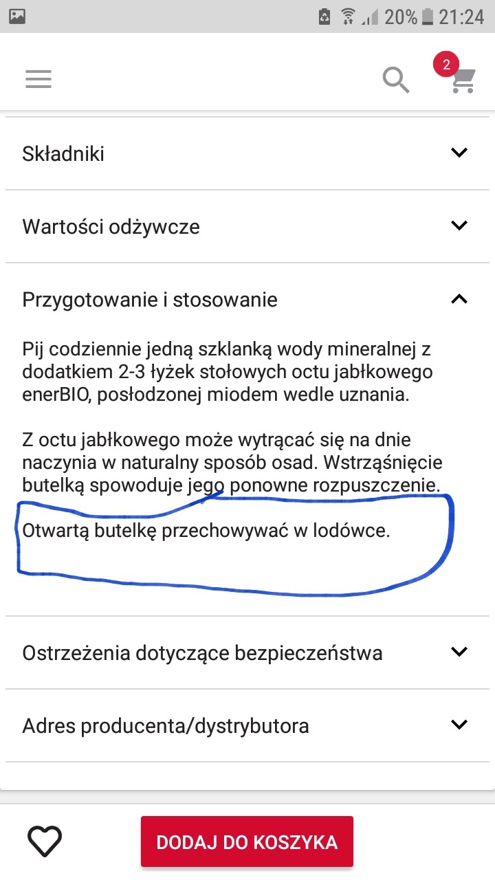 A ja od 4 lat uzywam i zawsze na wierzchu trzymalam.nic nigdy sie z nim nie dzialo.teraz bede chowac do lodówki.nie wiedzialam ze trzeba.moja babcia jak sama robila ocet tez zawsze trzymam w szawce w zaciemnionym miejscu w kuchni.dzieki za infoAz musialam sprawdzic.. bo u nas w lodowce stoi. To opis ze strony rossmanna