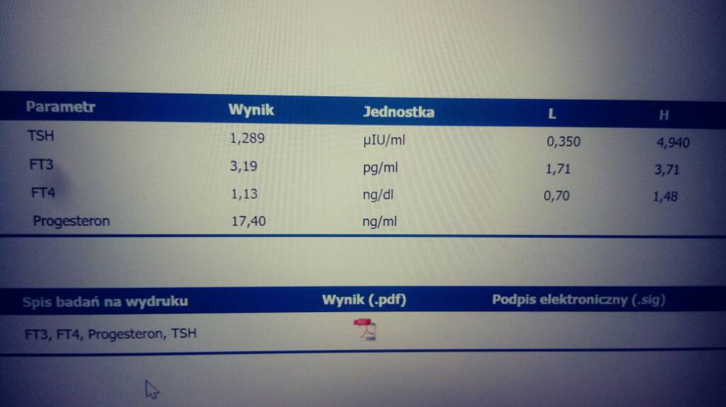 Wydaje mi się, ze progesteron masz super. Ja miałam chyba 12 lub 15ml w 21dc.Mam wyniki. Co myślicie? Czy progesteron nie jest za niski?Zobacz załącznik 962739