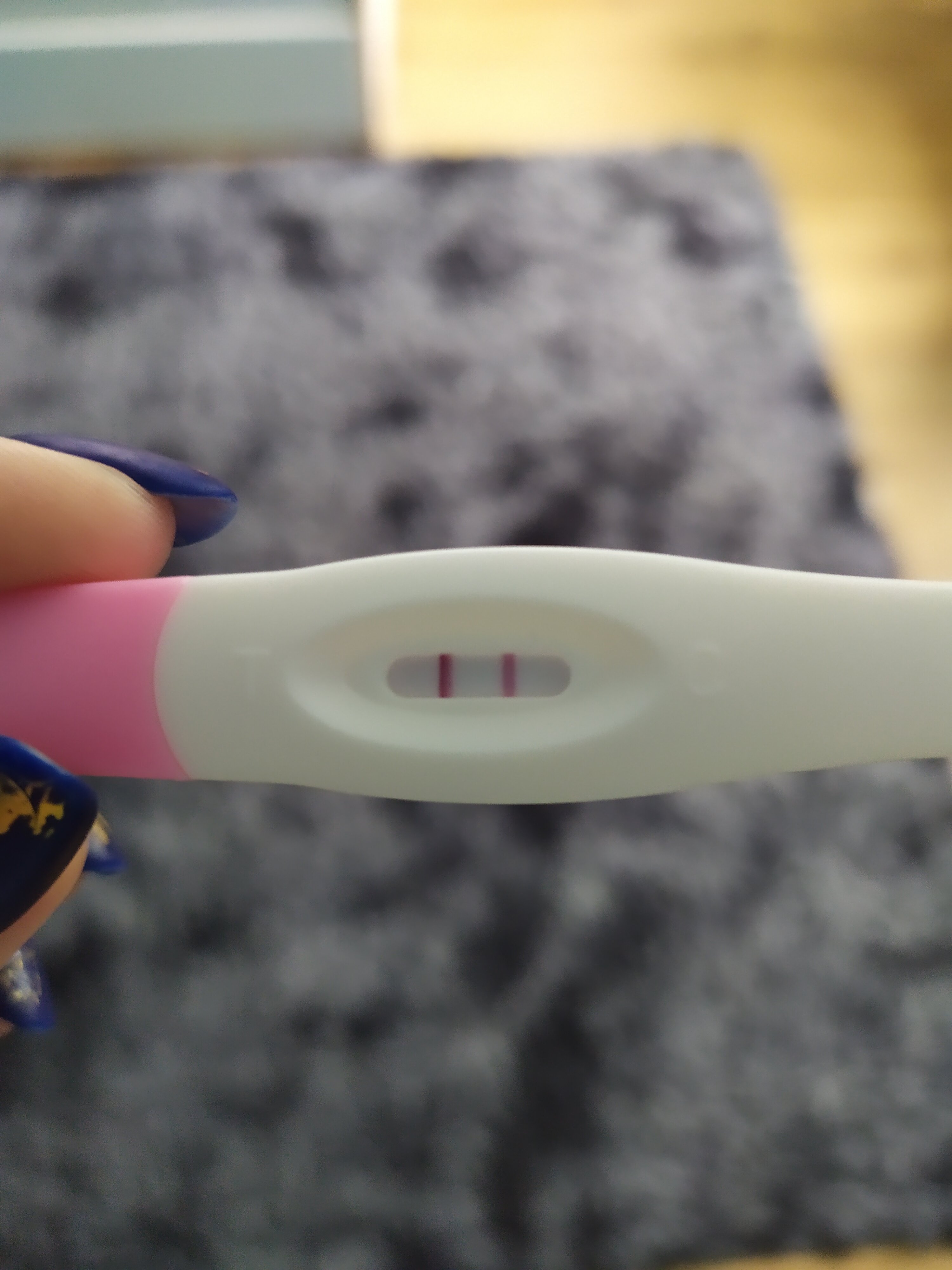 Chociaż jeszcze teraz zrobiłam test, myślałam, że już po owu, bo podbrzusze rano bolało, ale jeszcze jakaś minimalna nadzieja jest, bo test przepiękny.