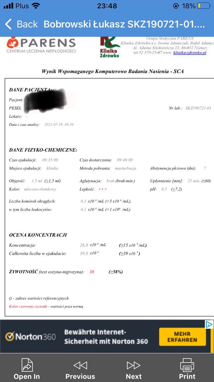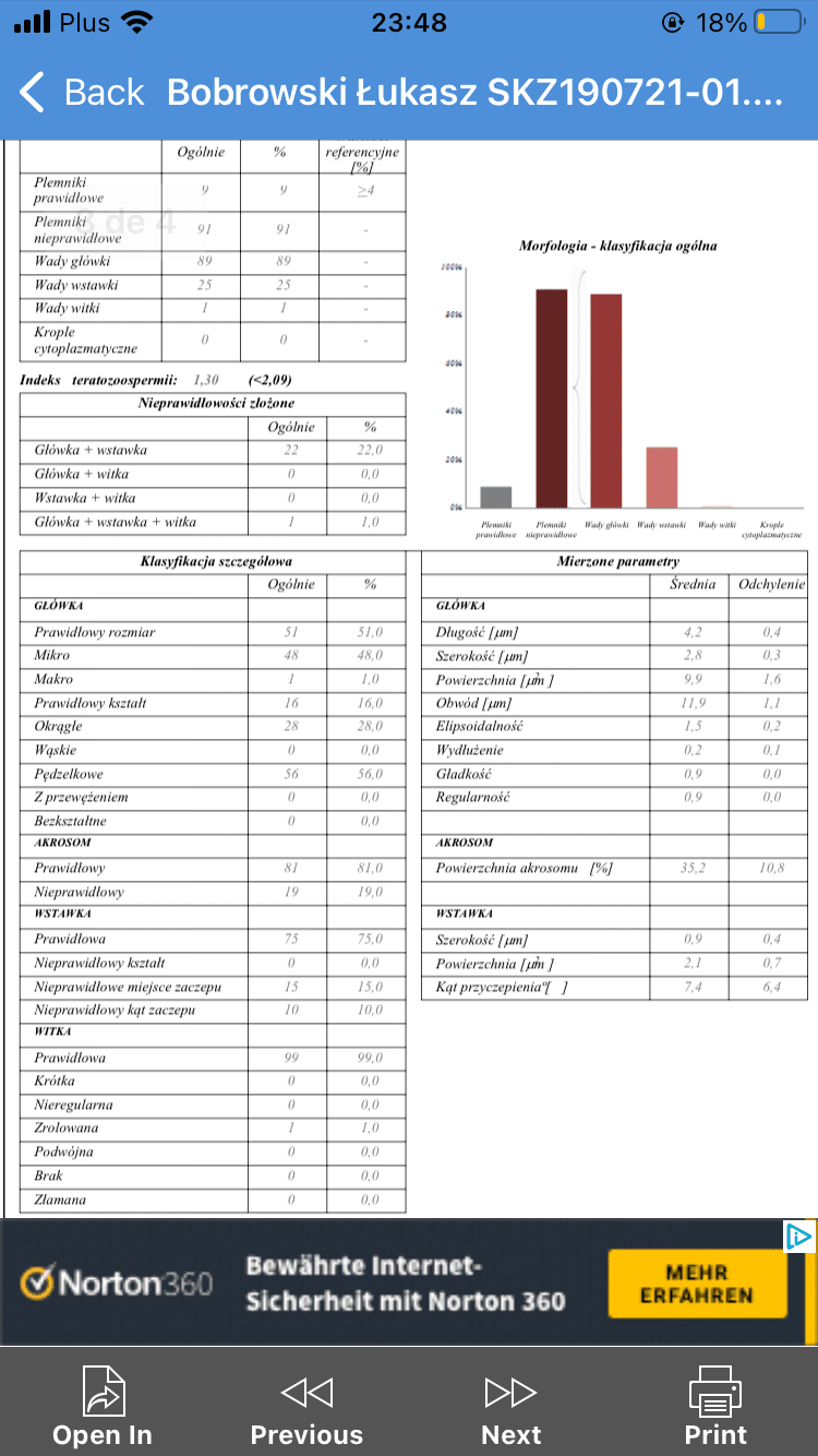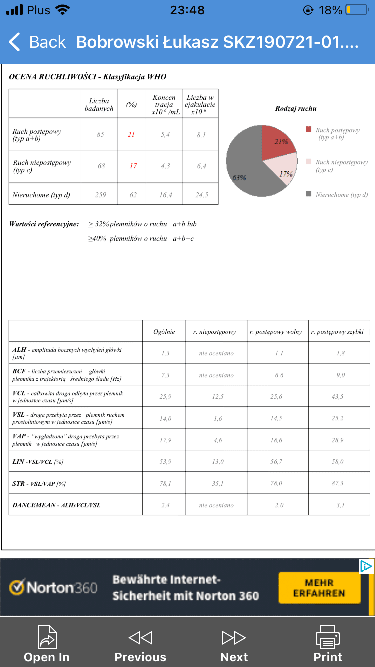 Ale moje pytanie było odnośnie wyników męża bo odebrałam dziś i nie wiem co teraz bo na moje( zabardzo się nie znam) wyniki są średnie.