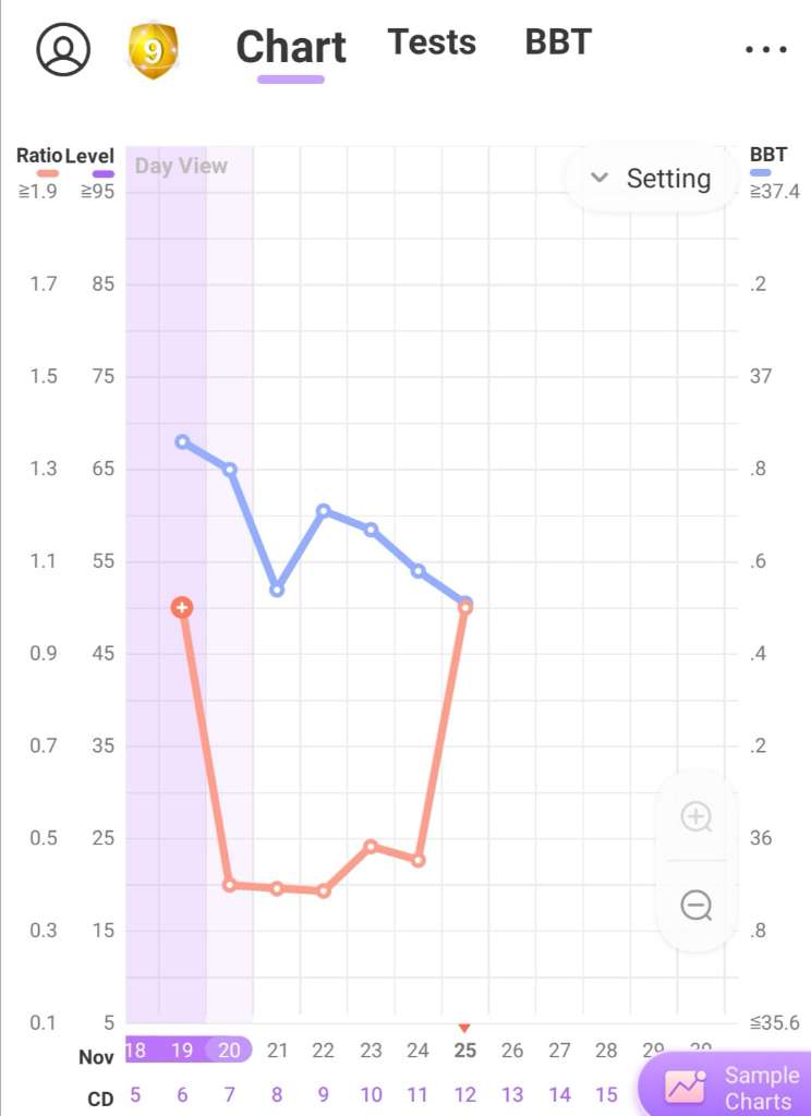 U mnie 12dc, śluz płodny jak ta lala od kilku dni. Dzisiaj popołudniowy test owu za tyćkę pozytywny (wieczorny powinien być już peak, chyba, że to był ten [emoji16]). Pokażę Wam jak wygląda mój wykres z testami owu i mierzoną temperaturą (bo zaczęłam mierzyć). Nie wracajcie uwagi na ten pomarańczowy początek, bo pierwszy test owu mi wyszedł tak śmiesznie wysoko, a przez kolejne negatywne ten wyłapało jako peak. Ktoś się zna na tym? Widzicie coś na tym wykresie? Bo dla mnie to na razie czarna magia [emoji2962]