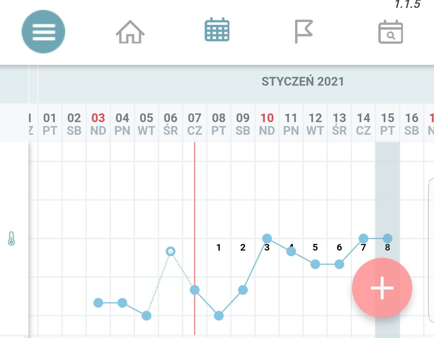 No to nic z niego nie odczytam bo nie widzę wcześniejszych temperatur@HeraUnique Niestety, to jest prawie cały wykres. Temperaturę zaczęłam mierzyć, dopiero od 11dc. Aplikacja pokazuje, że 22.01 powinnam dostać @. Ale testowanie planuje najszybciej na 23.01 lub 24.01. Oczywiście, jeżeli szybciej się nie pojawi.