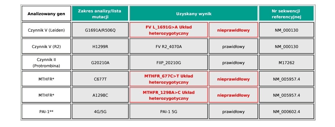 DziękujęWydaje mi się, że masz trombofilię. Bo masz V Leiden. Zapewne w ciąży od początku heparyna. Do tego mutacje MTHFR więc możliwe, że nie przyswajasz zwykłych witamin ( należy zmienić na metylowany kwas foliowy)