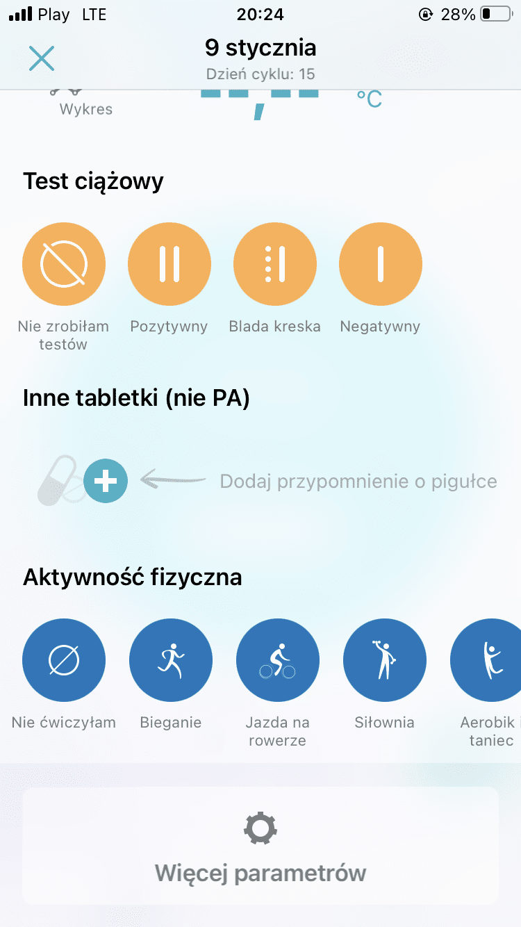 Zmieniłam na zajście w ciążę ale nic to nie dało. Jedyny wykres jaki mogę prowadzić to wykres odnośnie wagi. Mniejsza. Może mam nie zaktualizowaną aplikacjeHmm a może masz ustawioną kontrolę cyklu a nie zajście w ciążę i może nie ma wtedy tej opcji? Bo ja mam podstawową wersję, nie premium i mam tak jak @Zazuu