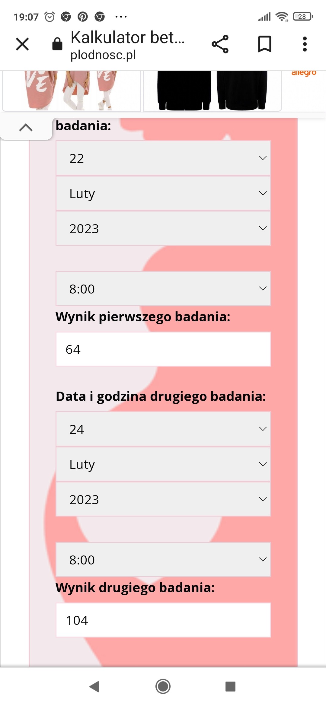 Wiem zauważyłam, na pewno jest to powód do pilnej konsultacji ginekologicznej. Natomiast dopóki nie zrobisz trzeciego oznaczenia bety spróbuj się nie przejmować tym wynikiem. Nie zawsze jest wszystko książkowo, a jak widzisz dwie jednostki wyżej i wynik byłby w porządku więc dopóki nie zrobisz trzeciego oznaczenia bierz ten wynik jako na granicy normy i spróbuj się zrelaksować.A jak się wpisuje 66 i 105 i po przecinku to wtedy jest poniżej normy.