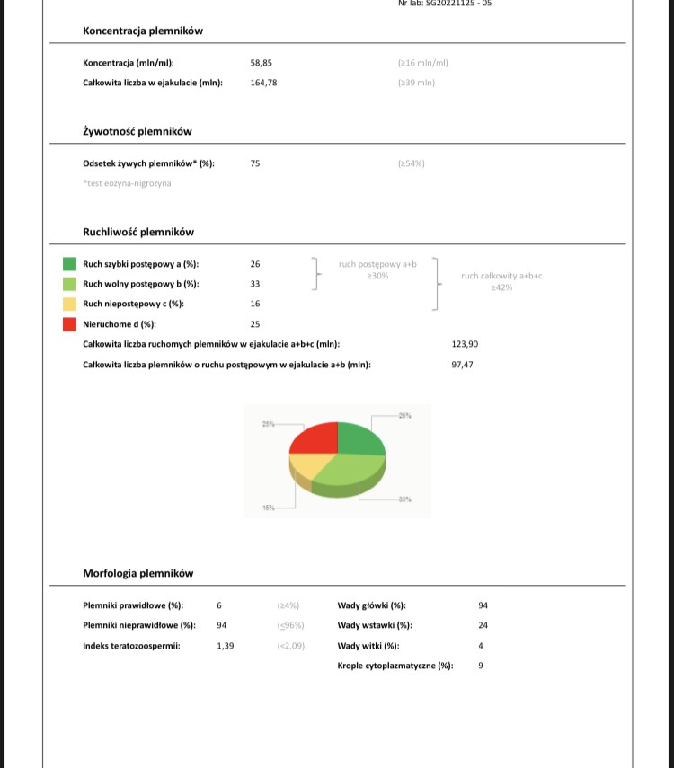 Cześć, przyszły wyniki nasienia mojego męża.